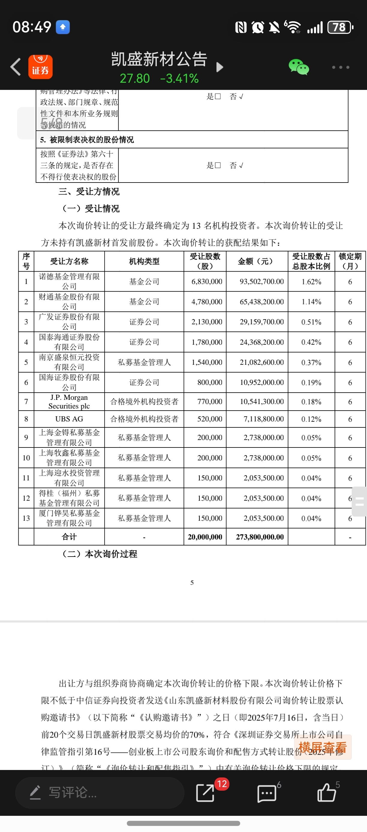 $凯盛新材(SZ301069)$ 半个月后这13家就解禁可以卖了
