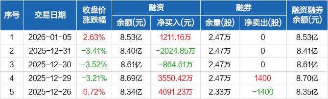 凯盛新材:融资净买入1211.16万元,融资余额8.53亿元(01-05)