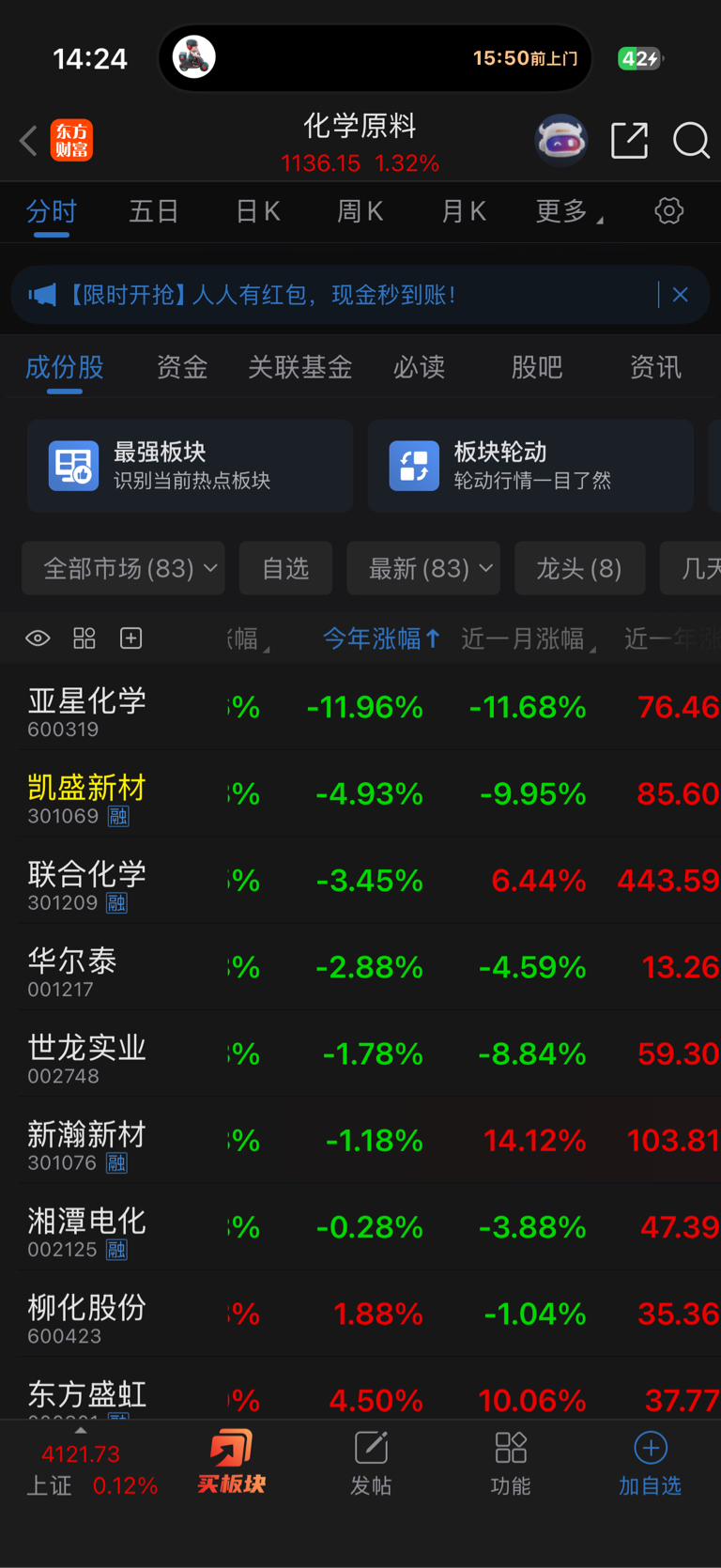 $凯盛新材(SZ301069)$ 整个板块倒数