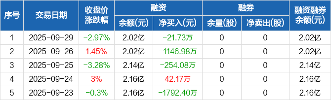 开勒股份:连续3日融资净偿还累计1422.8万元(09-29)
