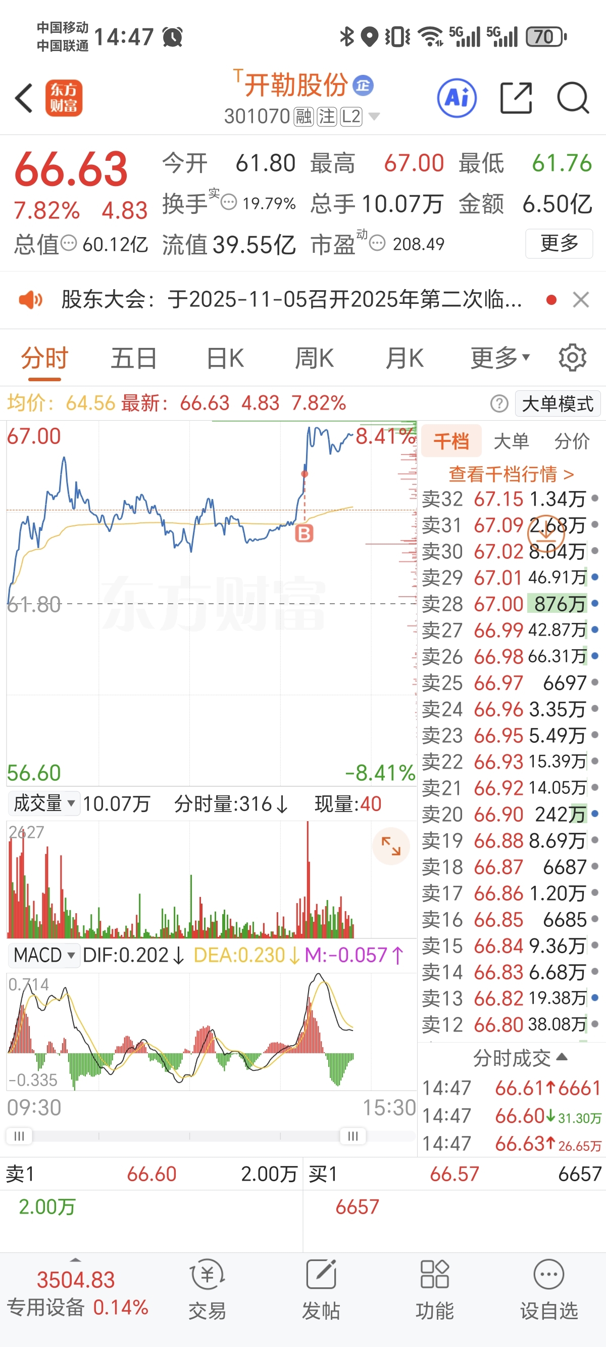 $开勒股份(SZ301070)$ 压着干嘛