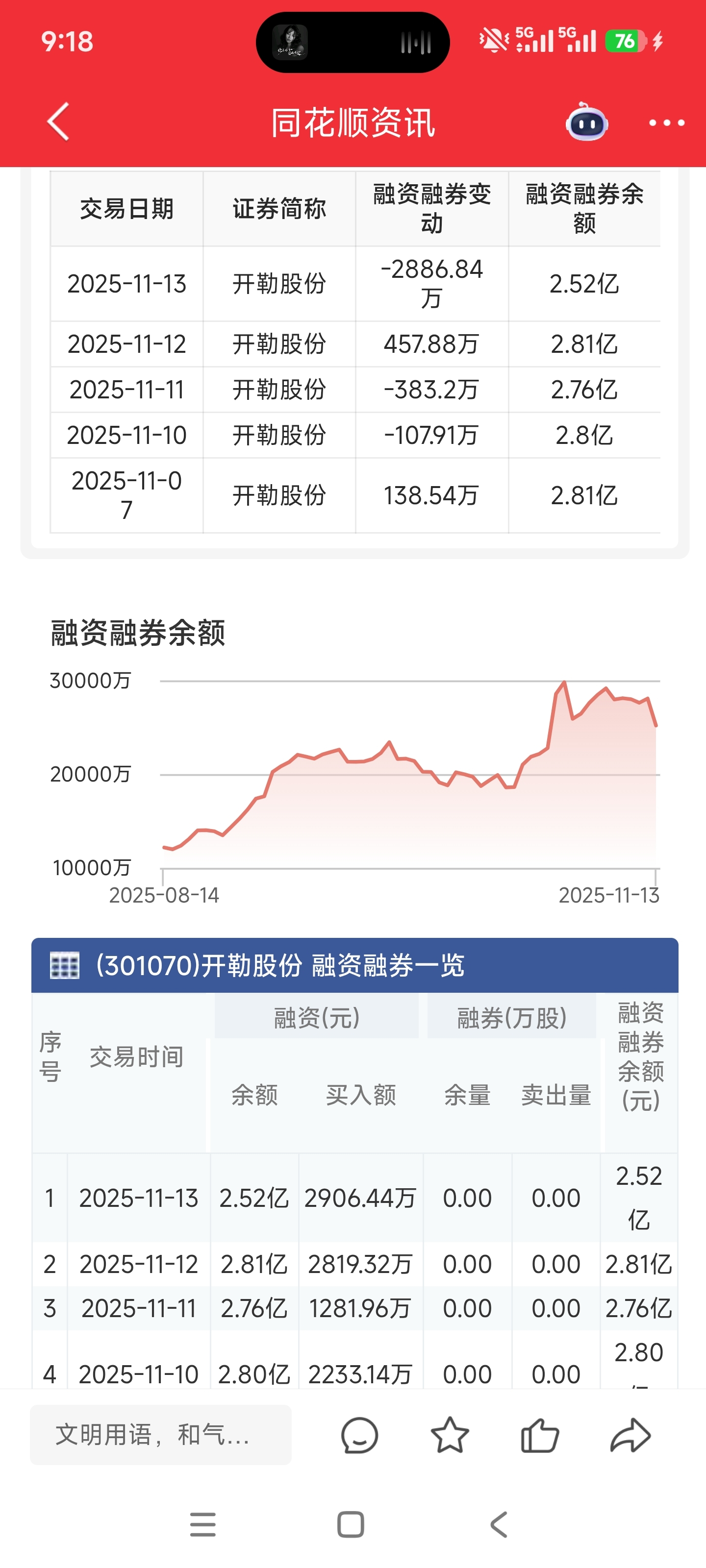 $开勒股份(SZ301070)$ 融资偿还砸盘