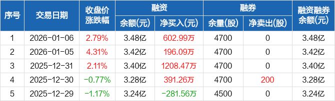 开勒股份:连续4日融资净买入累计2398.82万元(01-06)