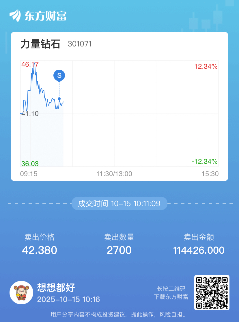 $力量钻石(SZ301071)$ 12个点没卖,最低点卖了