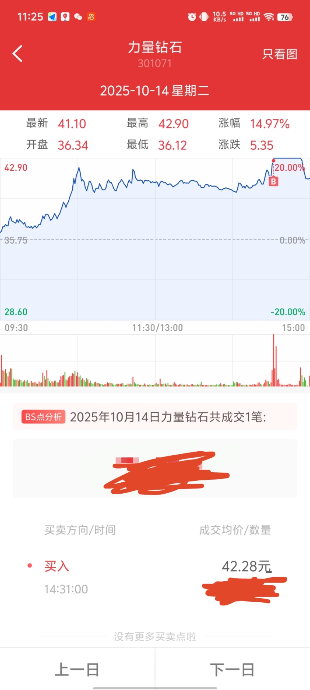 $力量钻石(SZ301071)$ 昨天快打板买的,以为今天弱转强还加仓了,肯定是洗盘