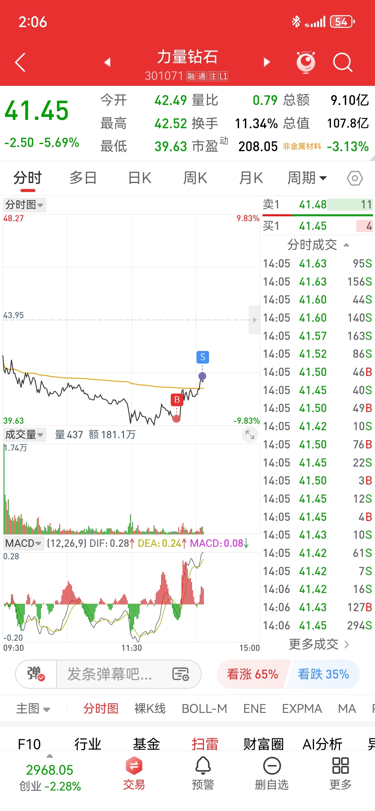 $力量钻石(SZ301071)$ 今天做了四个点的T,就这样了,持股不动,成本低