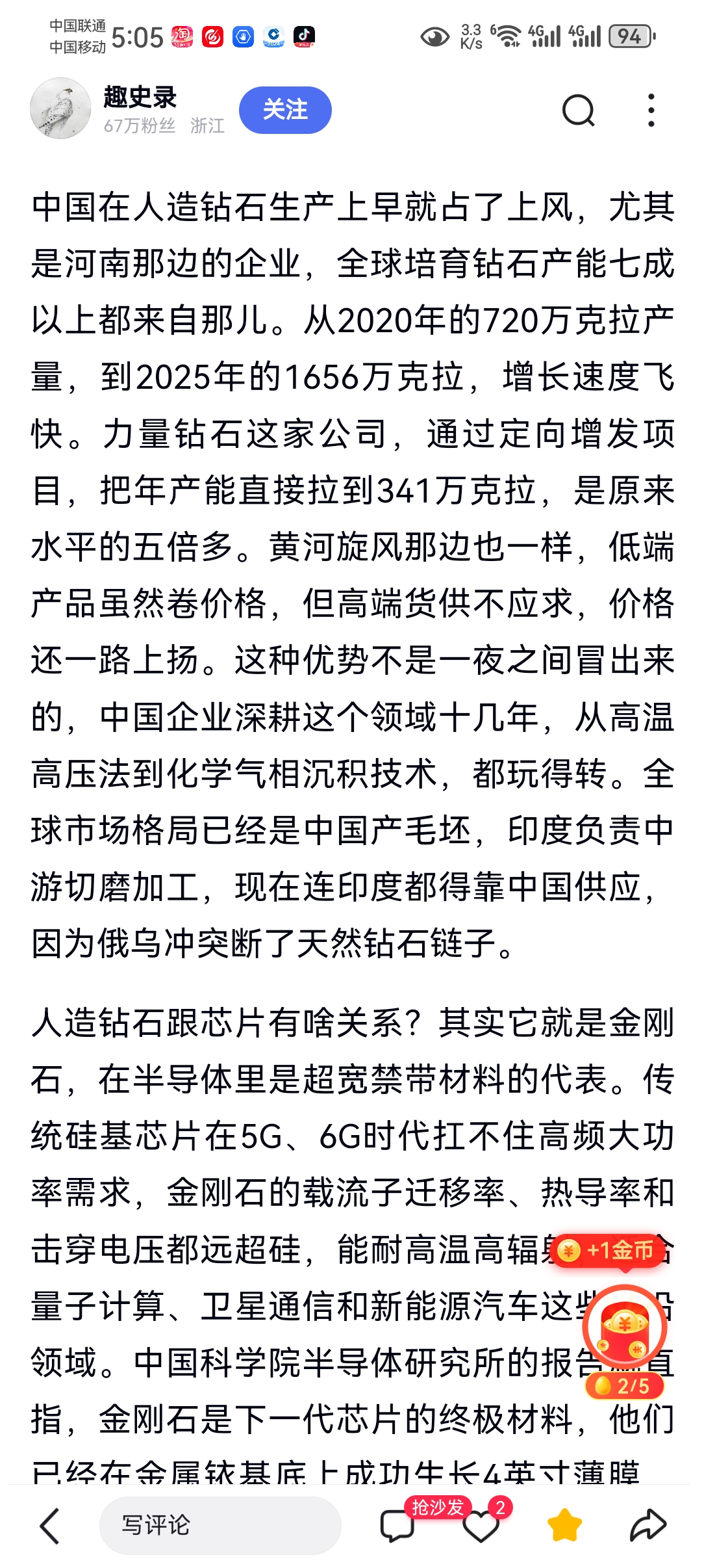 看看力量钻石牛逼了,星期一开盘火箭发射