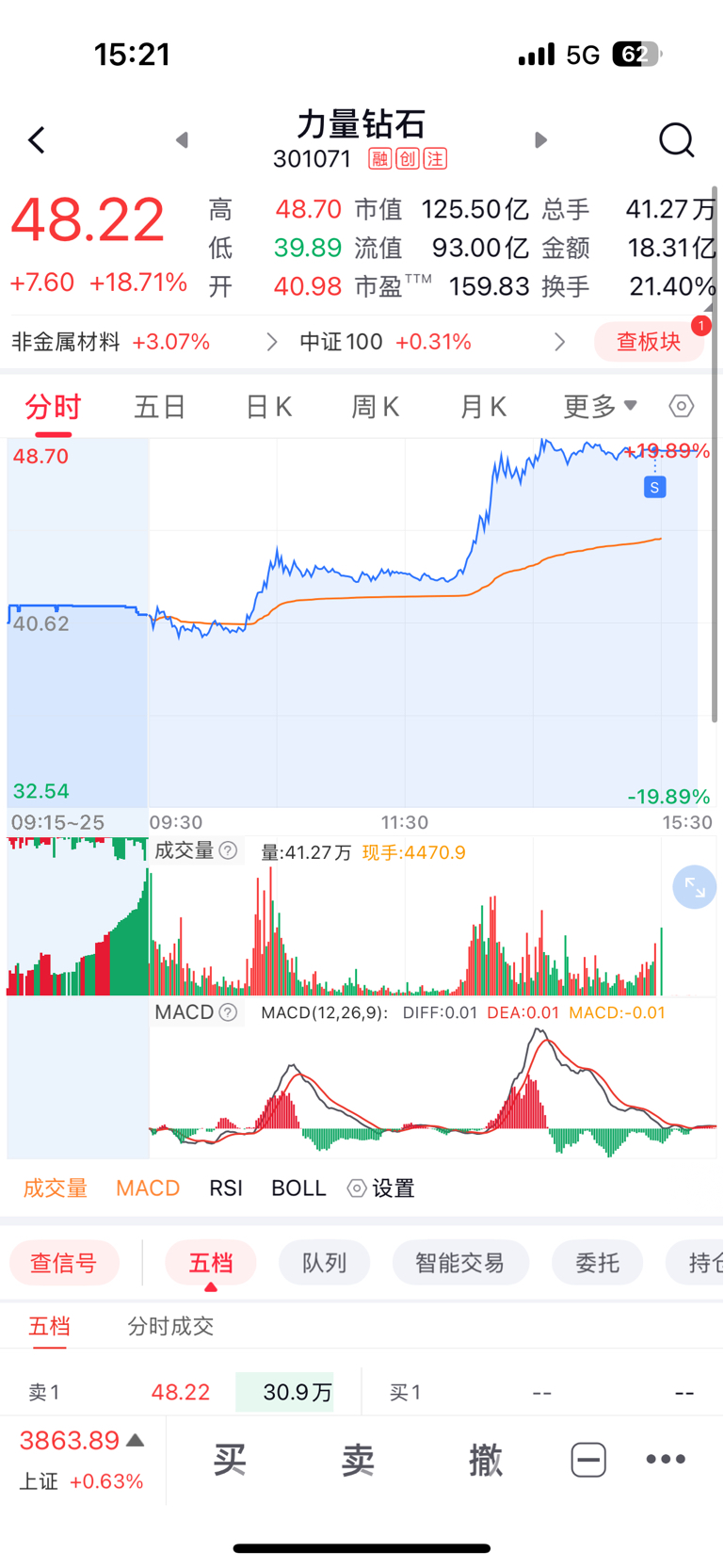 $力量钻石(SZ301071)$ macd 量价背离 选择先出来落袋为安 卖在人声鼎沸时