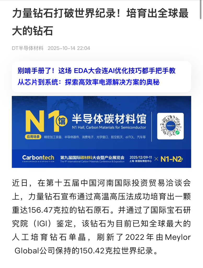 $力量钻石(SZ301071)$ 力量打破钻石世界纪录