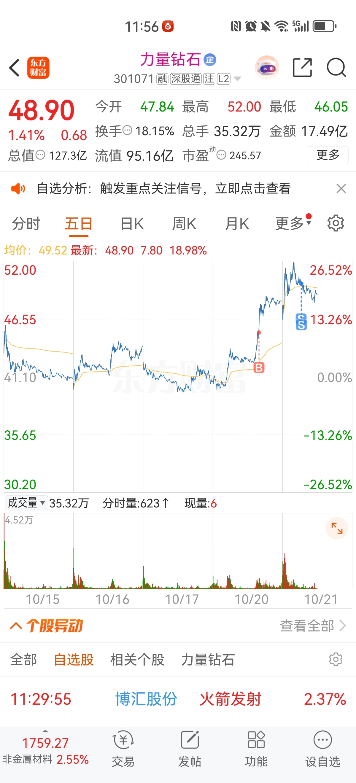 赚了11个点,先出来,明天早盘接回来。不会像昨天的四方达一样又卖飞了吧?