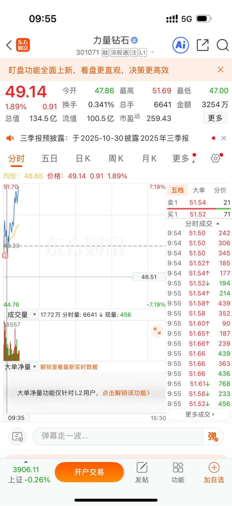 49.14选择介入个股$力量钻石(SZ301071)$ #强势机会# #实盘记录# #投资干货# #投资随笔#