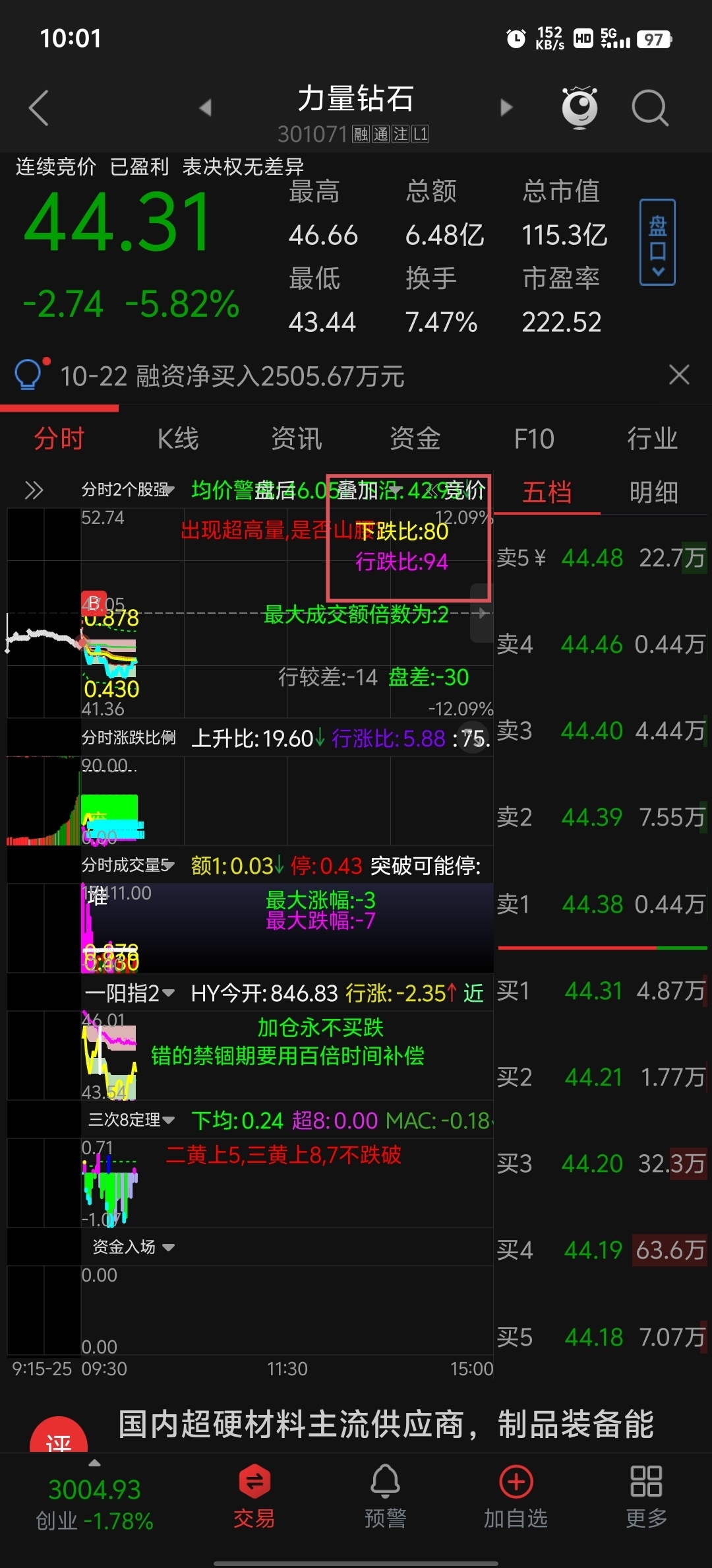 $力量钻石(SZ301071)$ 就这大盘(只统计了上市深市)80%股票下跌,默认关键行业94%的股票下跌,还不跑