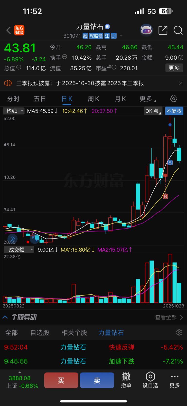 $力量钻石(SZ301071)$ 还好前天跑了,一日游赚了24点。最近追了几个发现现在主力都是一日游的行情不能格局。