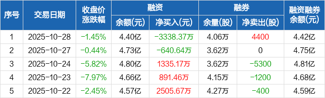 力量钻石:融资净偿还3338.37万元,融资余额4.4亿元(10-28)