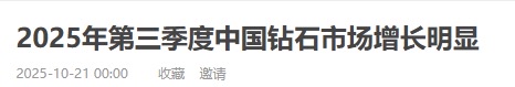 $力量钻石(SZ301071)$ 2025年第三季度中国钻石市场增长明显。
