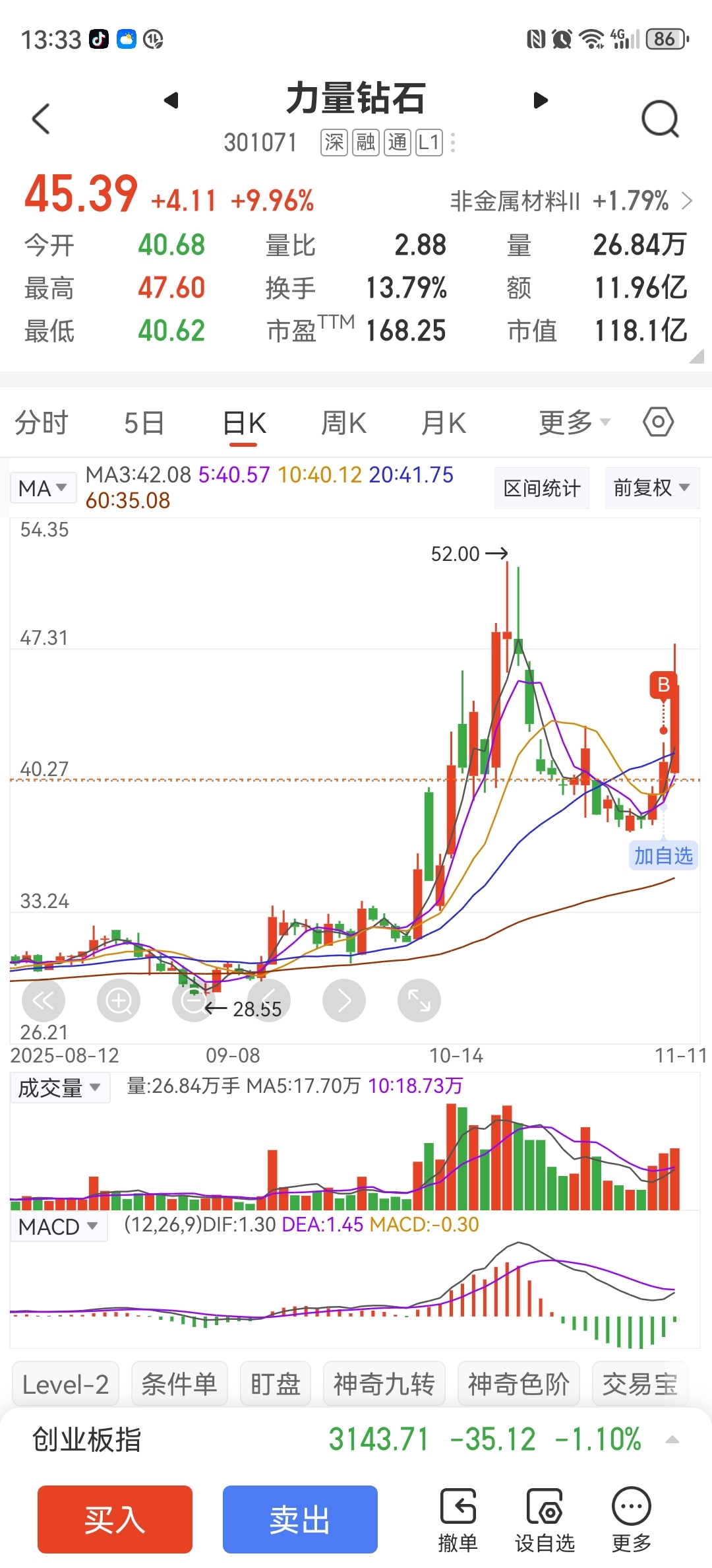 $力量钻石(SZ301071)$ 昨天进的。可以呀!龙回头形态,不到前高不动。