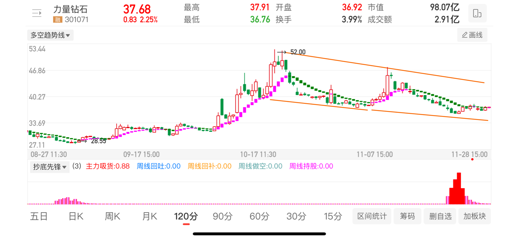一个走下降趋势的票,请大家都散了吧!怎么反弹都是诱多,来一批套一批,好自为之哦!