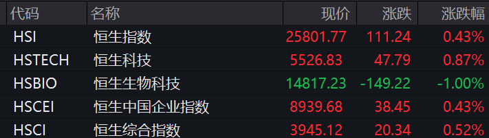 12月22日,香港恒生指数收涨0.43%,恒生科技指数涨0.87%。
