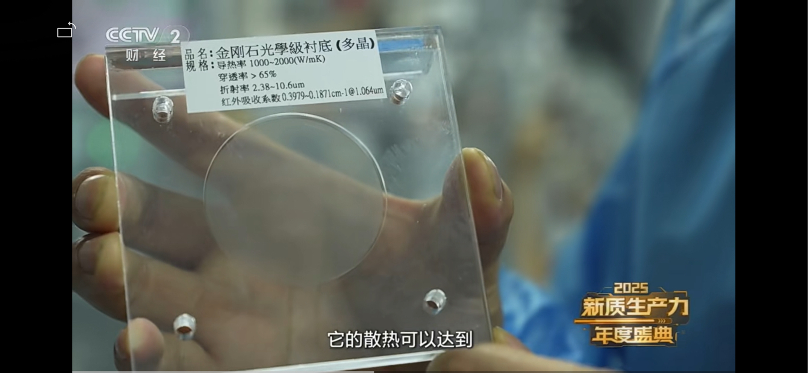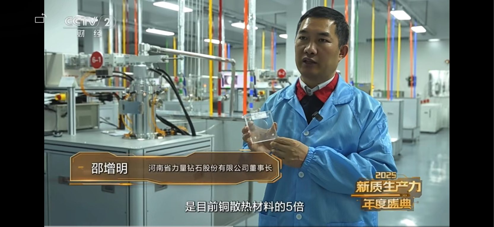 力量钻石入选央视“2025新质生产力年度十大案例”殊荣,钻石散热材料全球领先!中