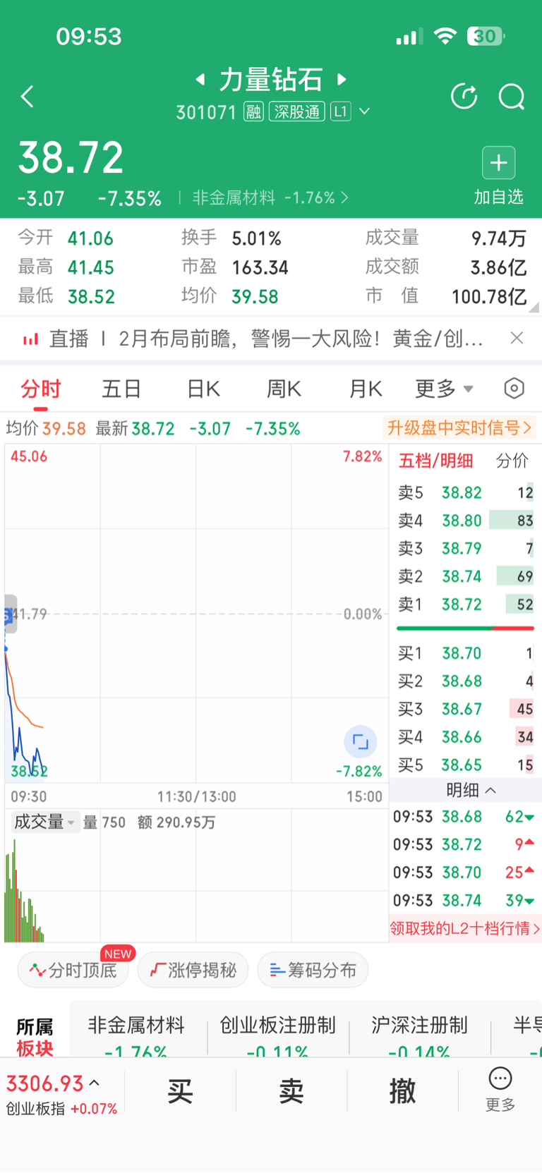 顶不住了,昨天43.16追进来的,今天竞价跑短线走坏,不要留恋,斩仓