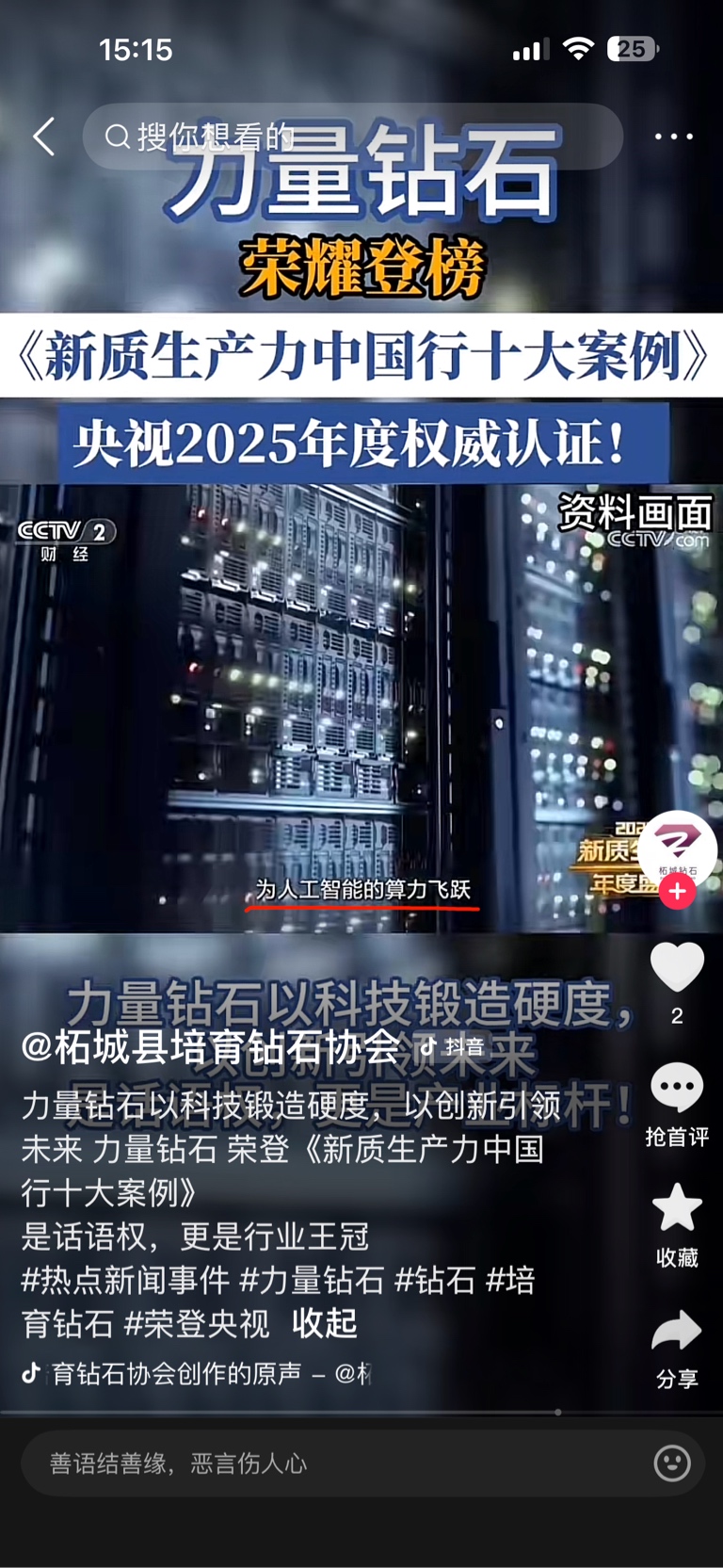 国家已经选出了2025新质生产力十大榜,力量钻石