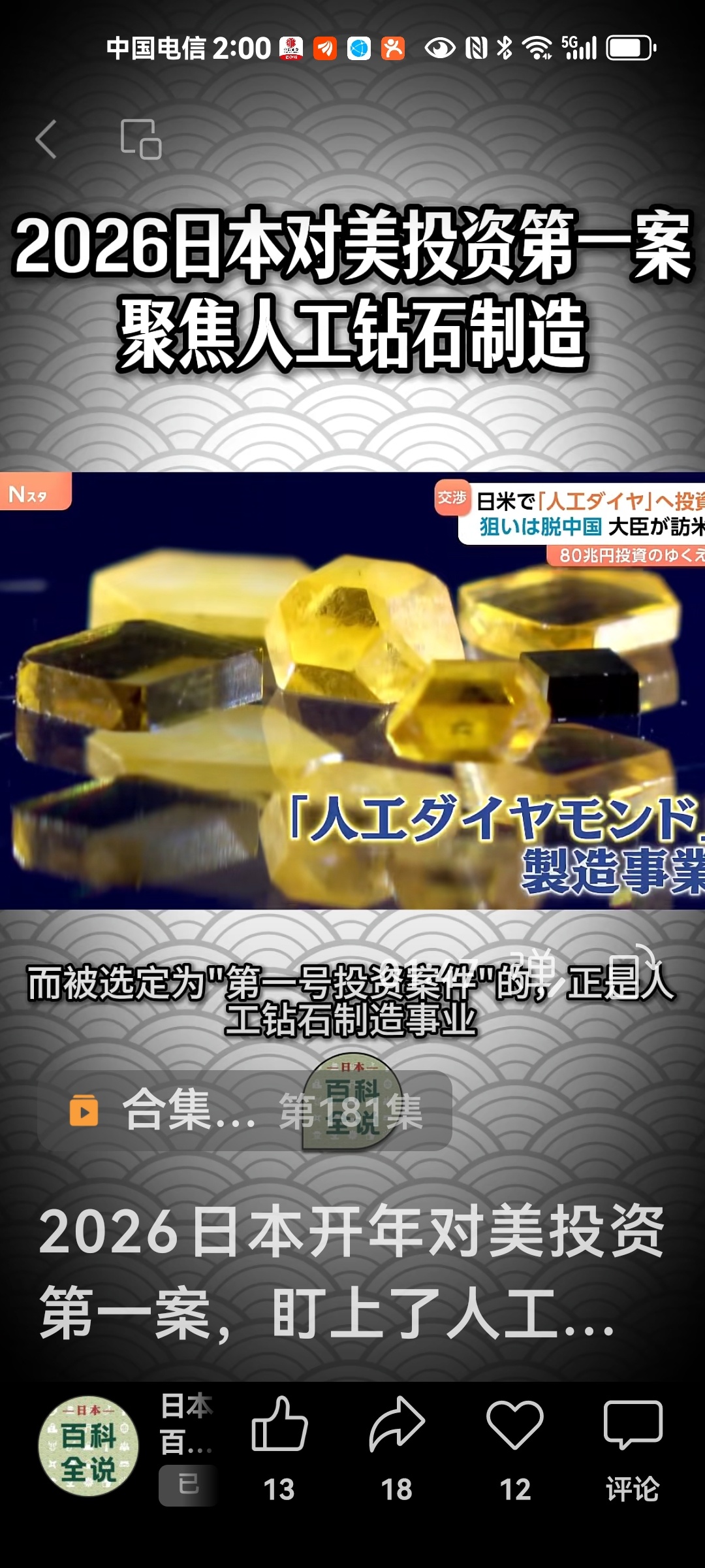 $力量钻石(SZ301071)$ 2月12号美日经贸合作中将人造钻石项目作为最先优选项目来推荐