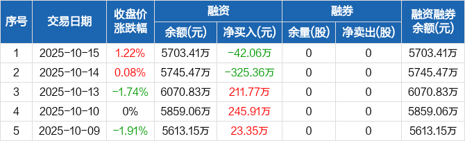 中捷精工:融资净偿还42.06万元,融资余额5703.41万元(10-15)