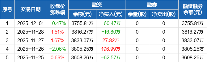 中捷精工:融资净偿还60.47万元,融资余额3755.81万元(12-01)