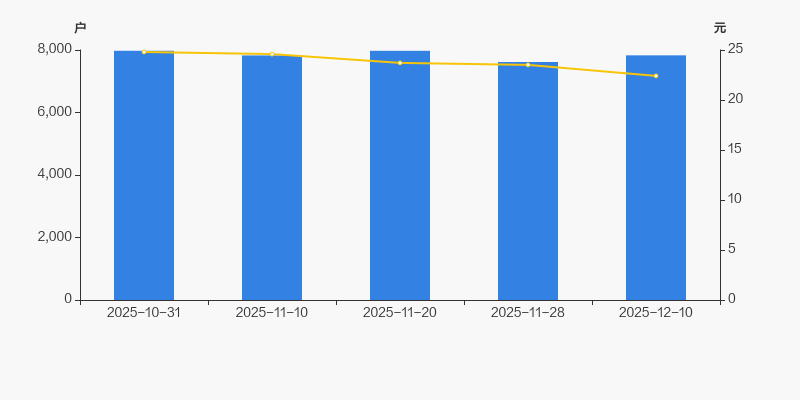 2025年10月31日至今,公司股东户数有所下降,区间跌幅为1.83%。2025年10月31日至2025年12月10日区间股价下降9.64%。