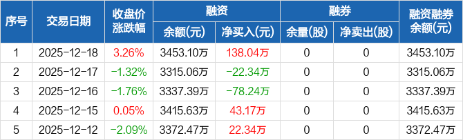 中捷精工:融资净买入138.04万元,融资余额3453.1万元(12-18)