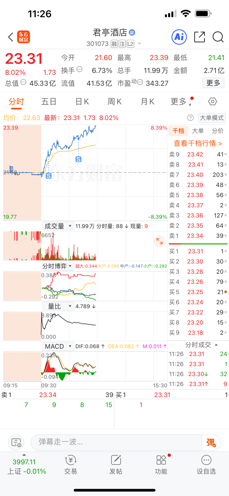$君亭酒店(SZ301073)$ 蒜你狠