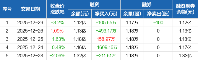 君亭酒店:融资净偿还105.65万元,融资余额1.12亿元(12-29)
