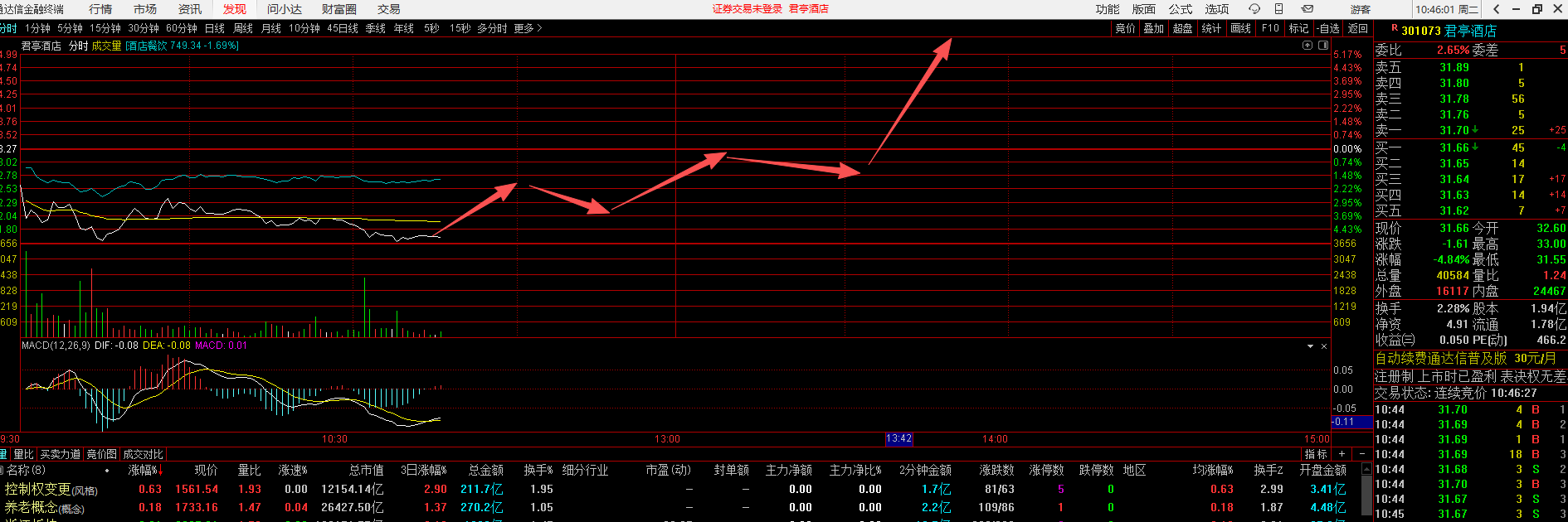 重大消息,重大消息,重大消息,君亭酒店今日走势图分析,认真看下面这幅图,在看看卖