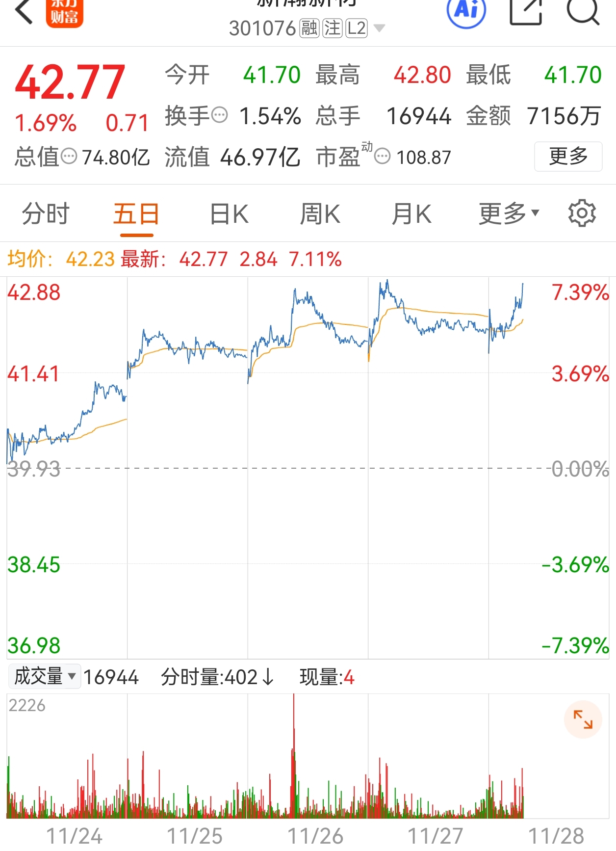 $新瀚新材(SZ301076)$ 周三周四周五高点都在这个位子,今天能打破吗