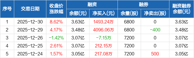 新瀚新材:融资净买入1493.24万元,融资余额3.63亿元(12-30)