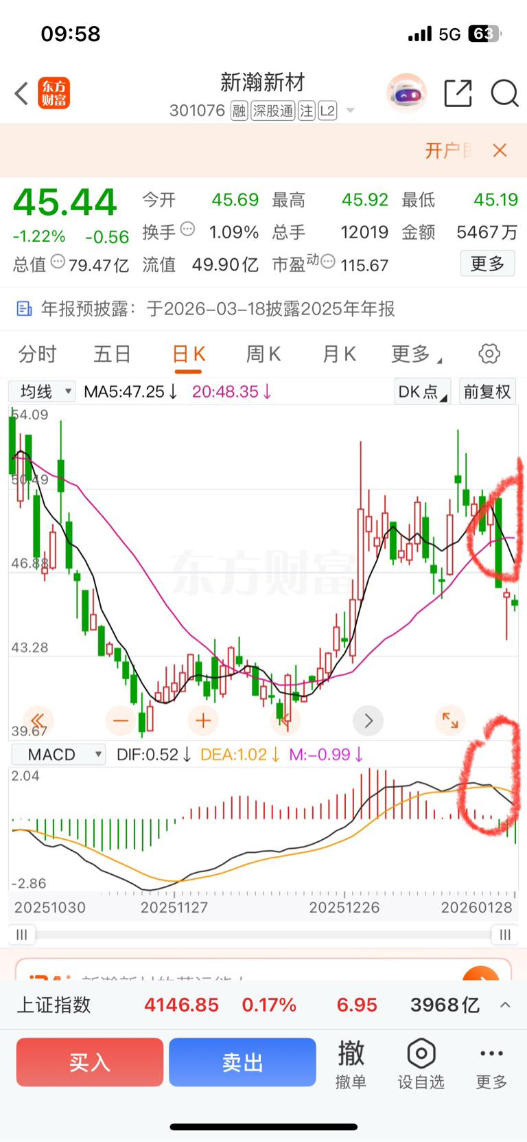 $新瀚新材(SZ301076)$ 这股废了,K线,MACD双死叉!