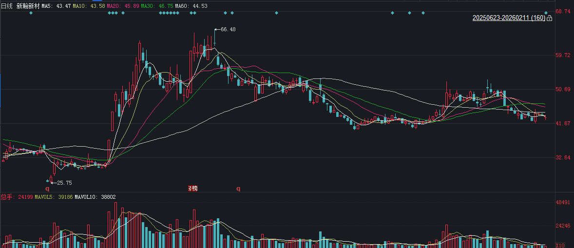 二级市场上,截至2月11日午间收盘,新瀚新材下跌1.53%报43.13元/股,总市值约75.43亿元,近一年来累计上涨超六成。
