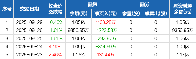 星华新材:融资净买入1163.28万元,融资余额1.05亿元(09-29)