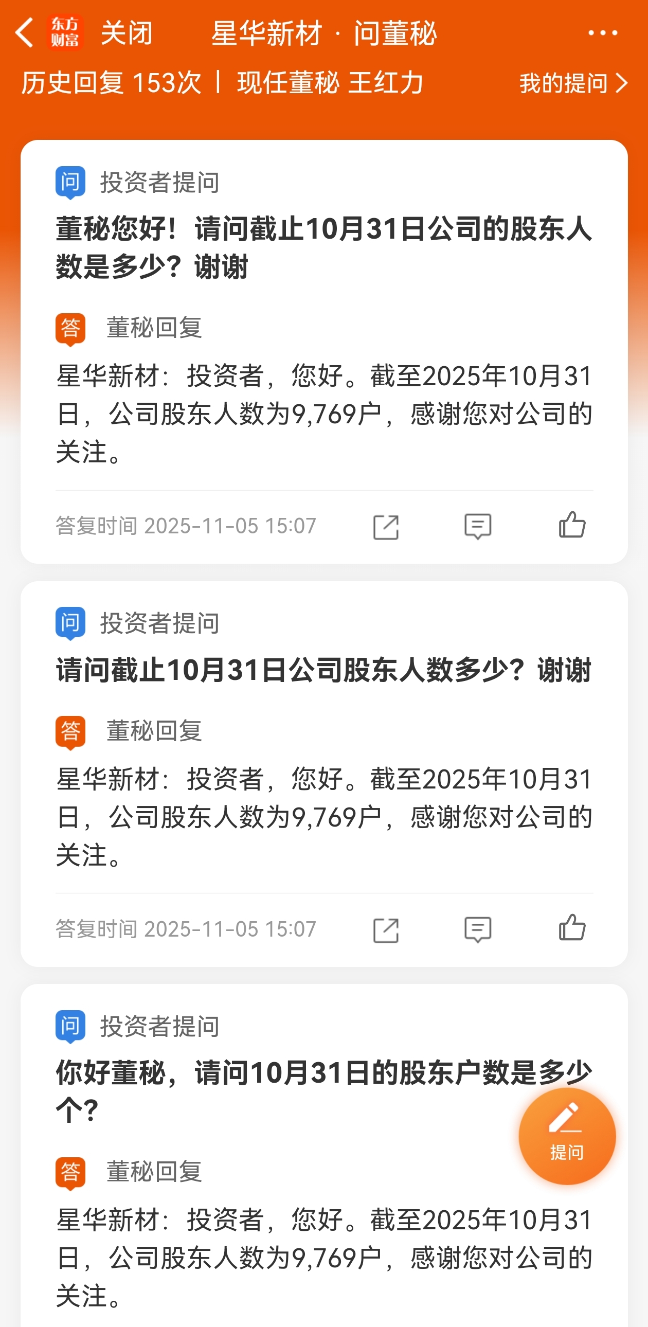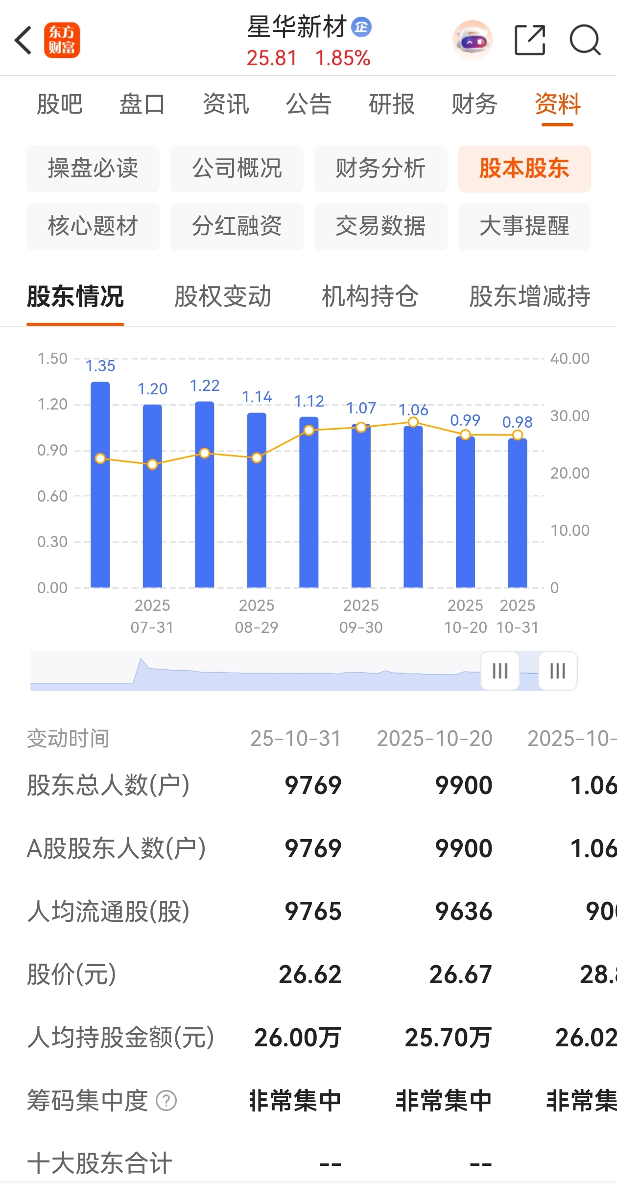 7月18日 星华新材股东人数还是1.35万人,10月31日股东人数骤减到9769人,筹码都去哪里了匪夷所思