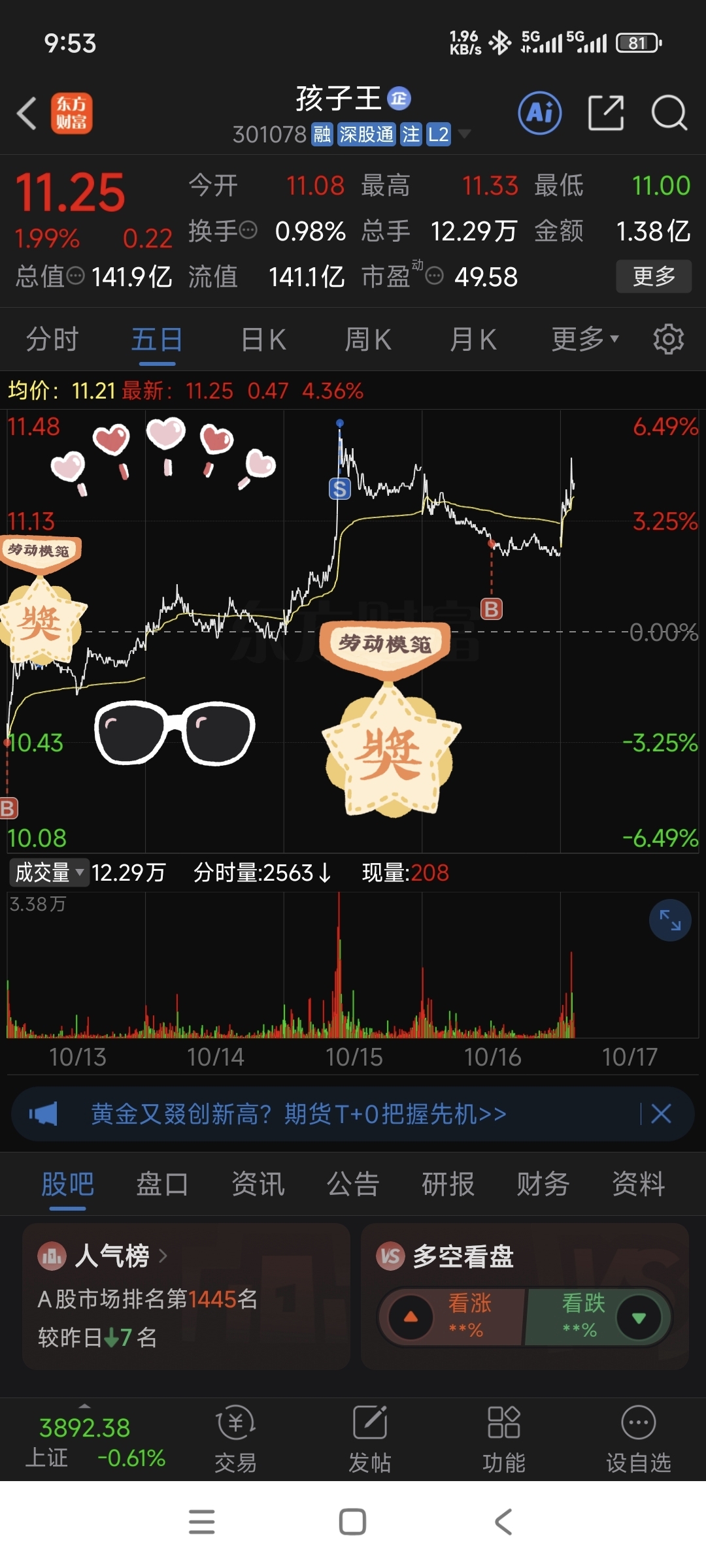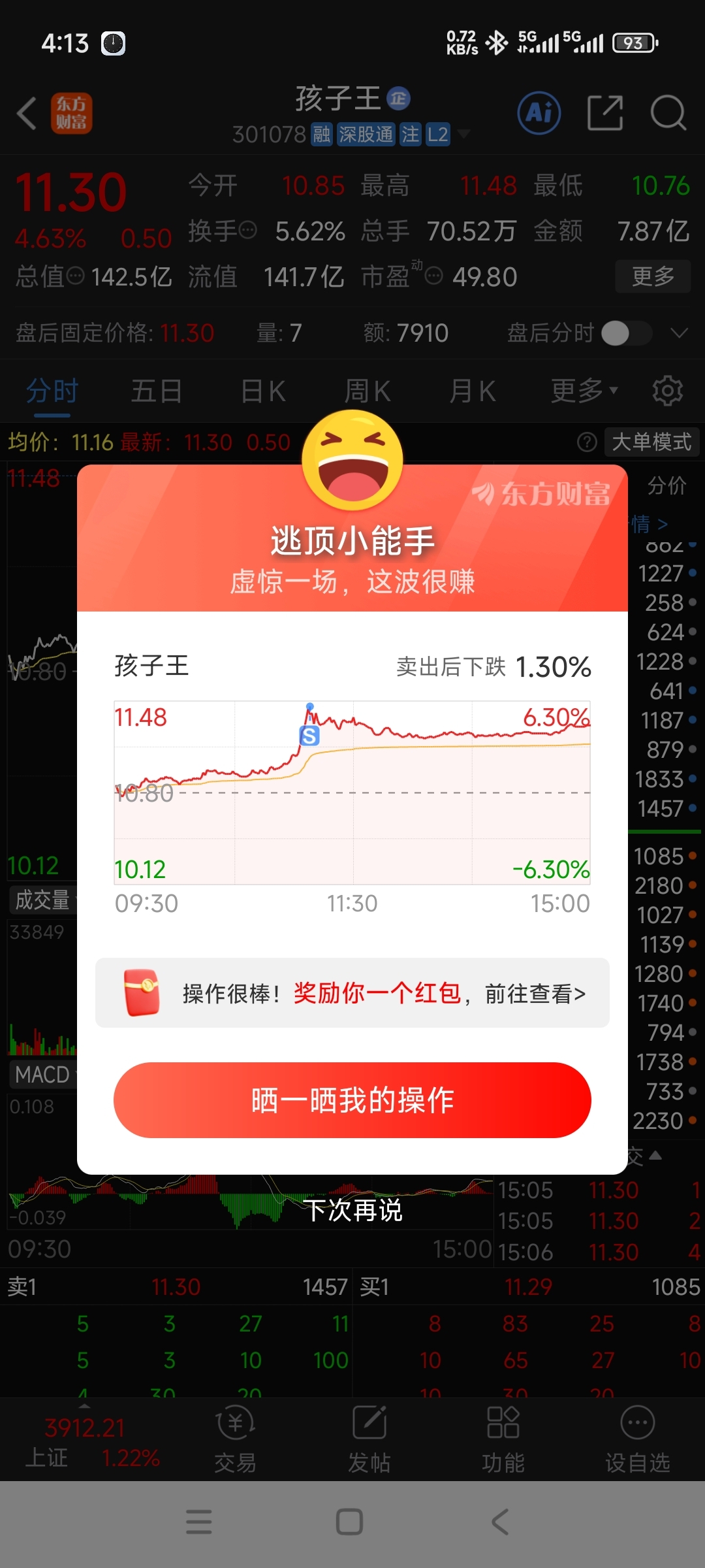 做只快乐的T狗,哈哈哈。11.43压力11.44卖了。10.92-11强支撑,打