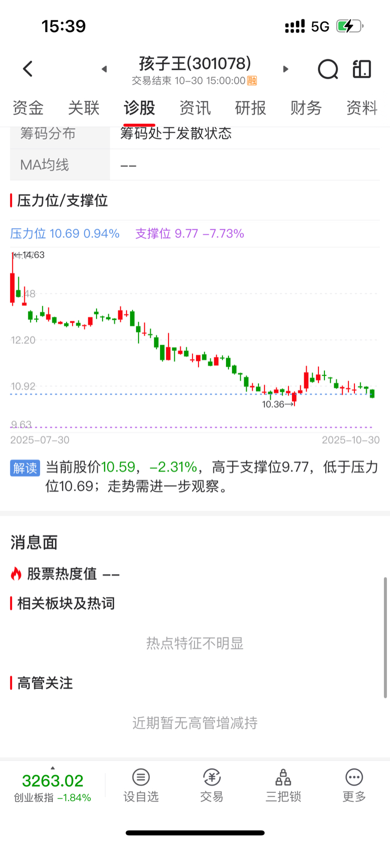 $孩子王(SZ301078)$ 跌破支撑位10.69,下探开启