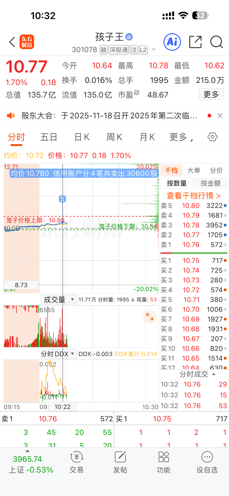 $孩子王(SZ301078)$ 10月31日,赶紧跑吧。下午要你命3000。等10.27元可以接回来。做个反弹10.44元出。然后就等破10。9.73元打满。10.31元再出。然后删自选。去买好票了。