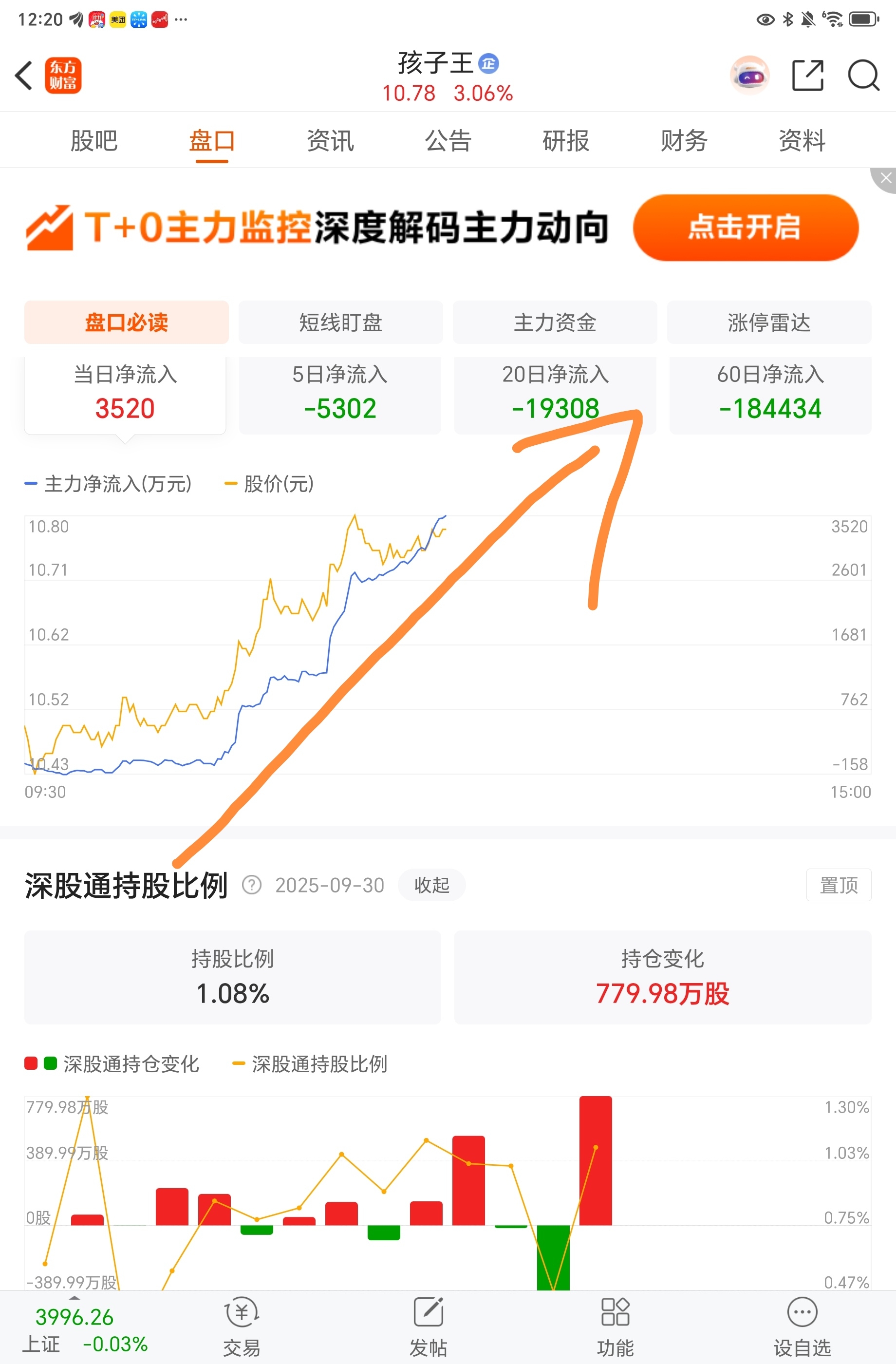 $孩子王(SZ301078)$ 东方财富,主力流入与股价上升一致