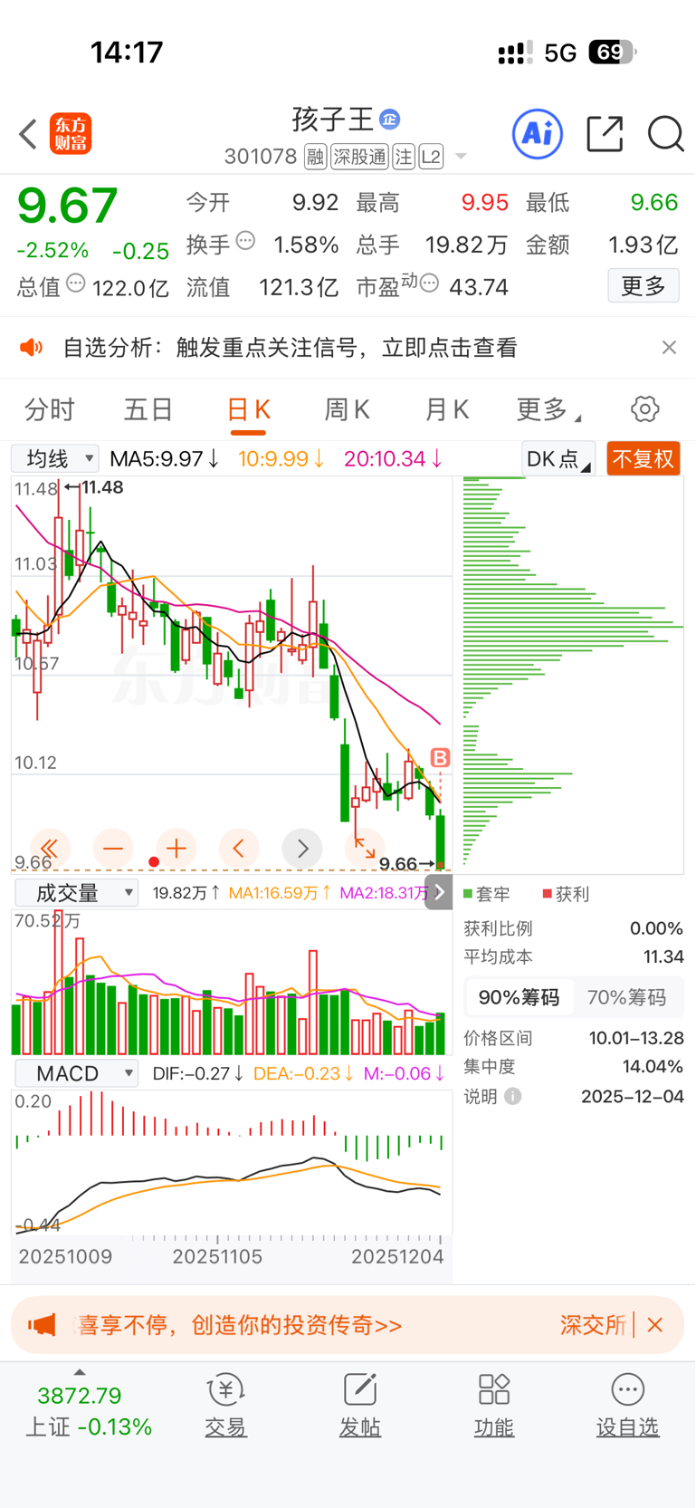 $孩子王(SZ301078)$ 获利比例为零,全部被埋在里面