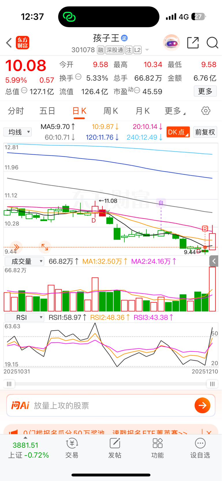 $孩子王(SZ301078)$ 昨天才买,今天就涨了