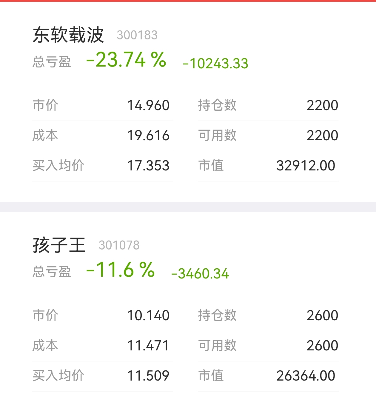 $孩子王(SZ301078)$ 两个亏损最多的票