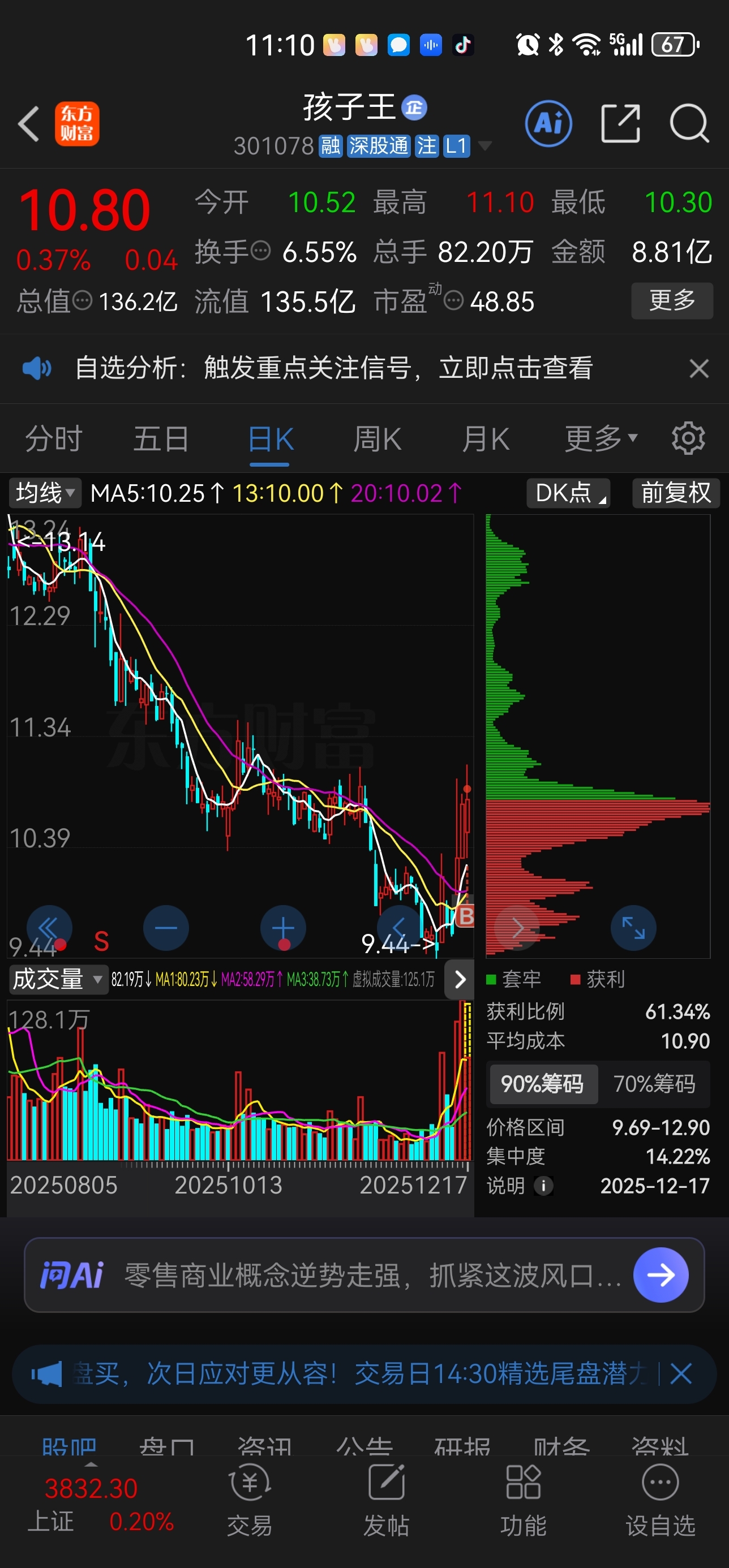 $孩子王(SZ301078)$ 今天难道不是放人走吗,刚好过了套牢盘的线。我学得可以进