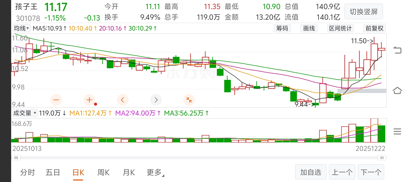 $孩子王(SZ301078)$ 底部区域正在走出,短期不确定是否回调。一层仓位为宜,分两次买入。