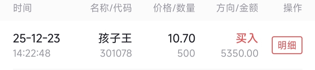 $孩子王(SZ301078)$ 加仓500,没资金了