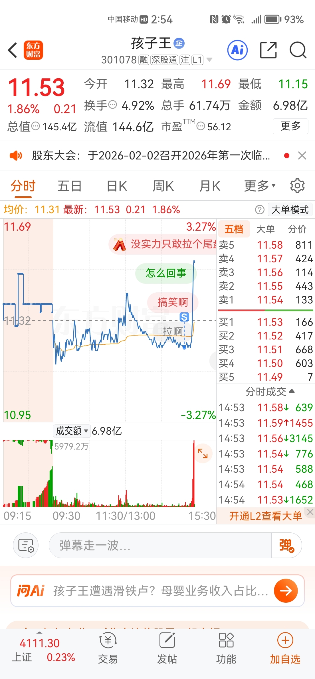 $孩子王(SZ301078)$ 主力差我这三瓜两枣
